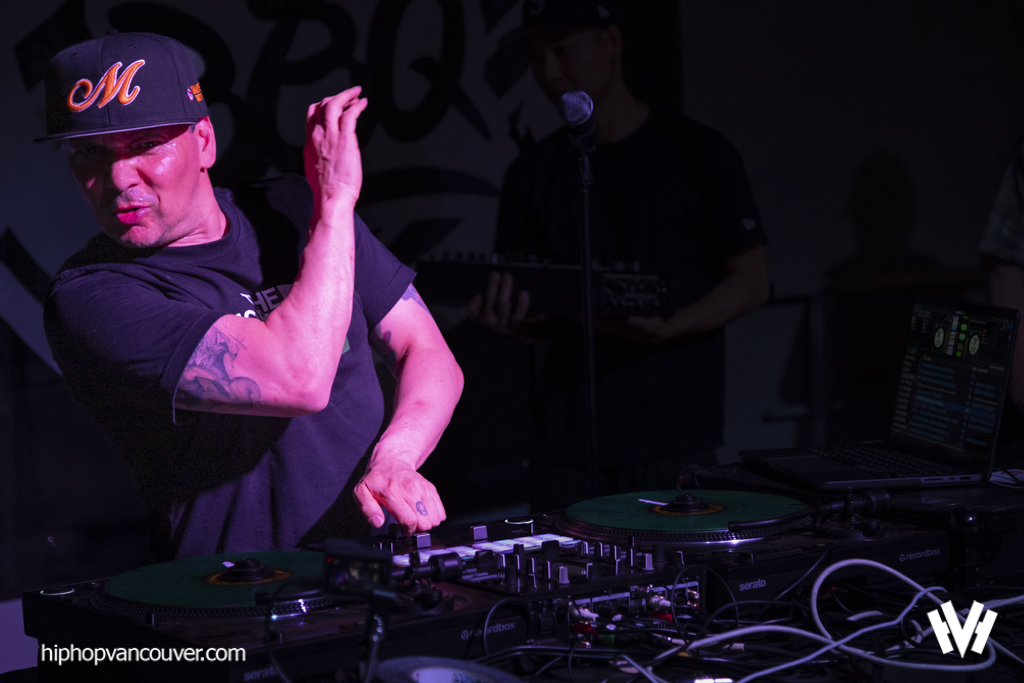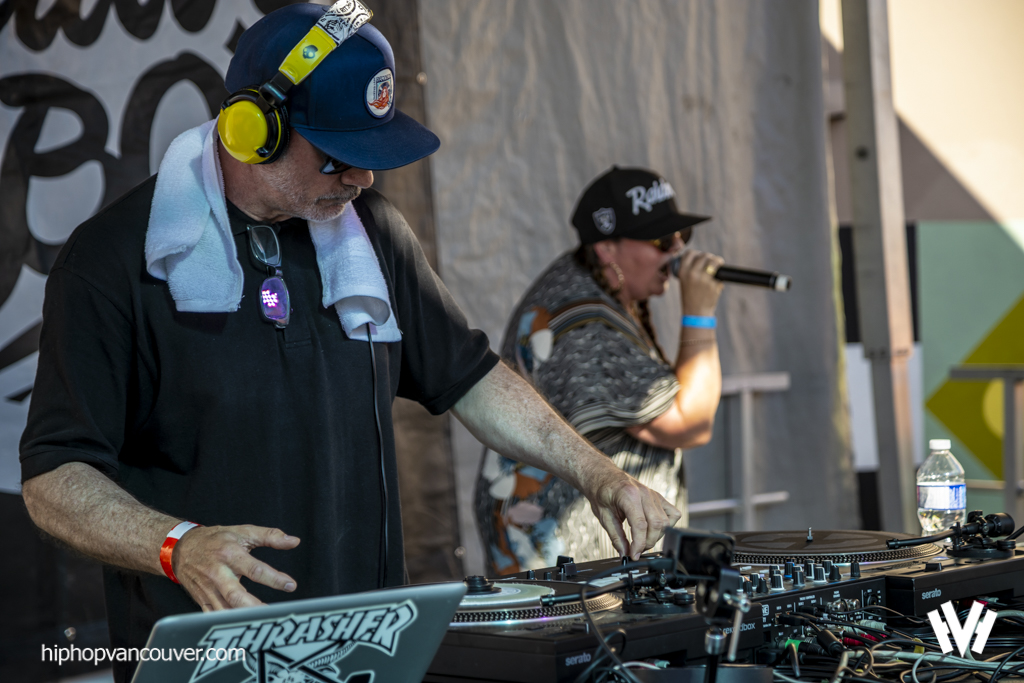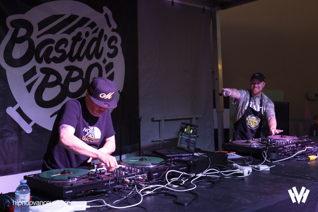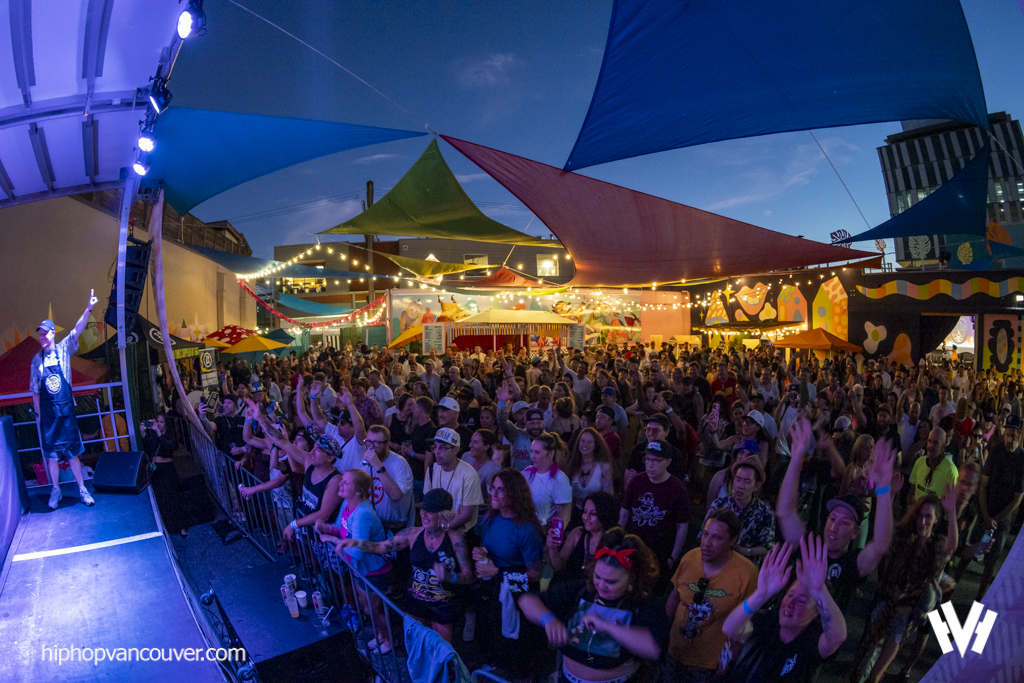 Skratch Bastid cranked things up with his signature party-rock mash-ups, heavy scratching, and boundless energy. With a huge smile, he kept the vibe alive, slipping in hits from local hip hop legends The Rascalz and Swollen Members.