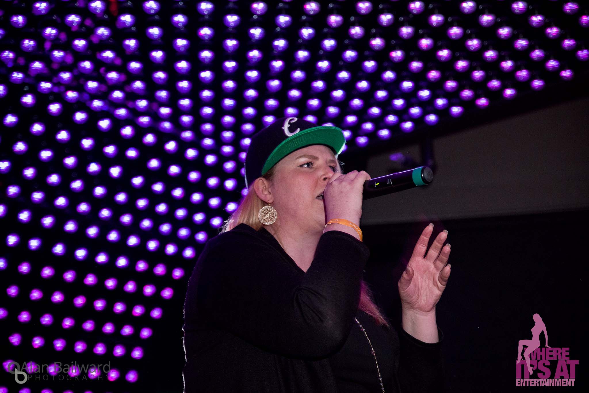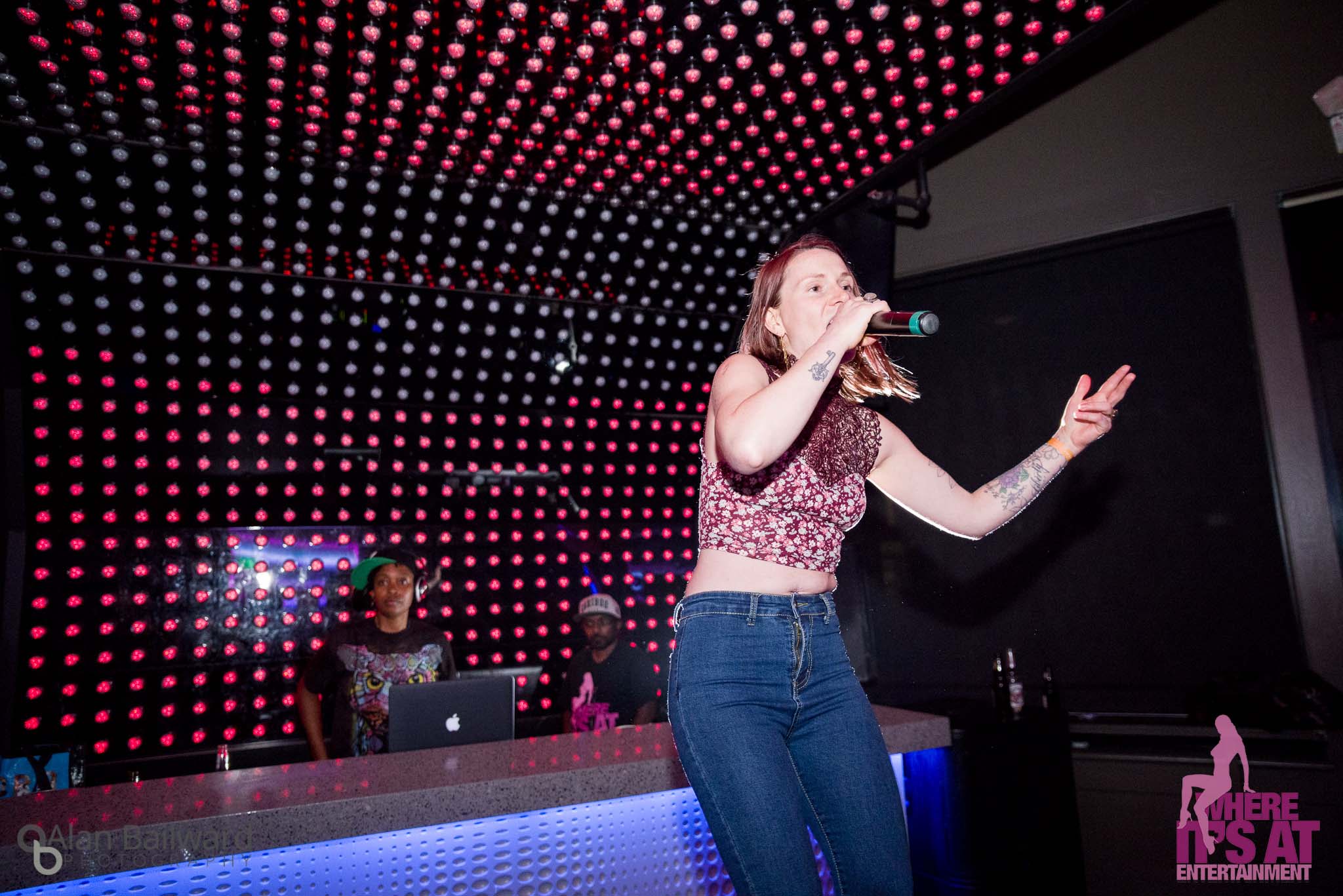 On Friday night, Where It’s At Entertainment & Cariboo Brewing presented the Women of the Underground showcase at LED Bar. The lineup featured eleven local female rappers. There was a colourful array of audience members- women walked in wearing sundresses and others wearing thigh high boots and crop tops. Men walked into the club in collared shirts and others with snapbacks. Fans of all types were there to support the ladies.